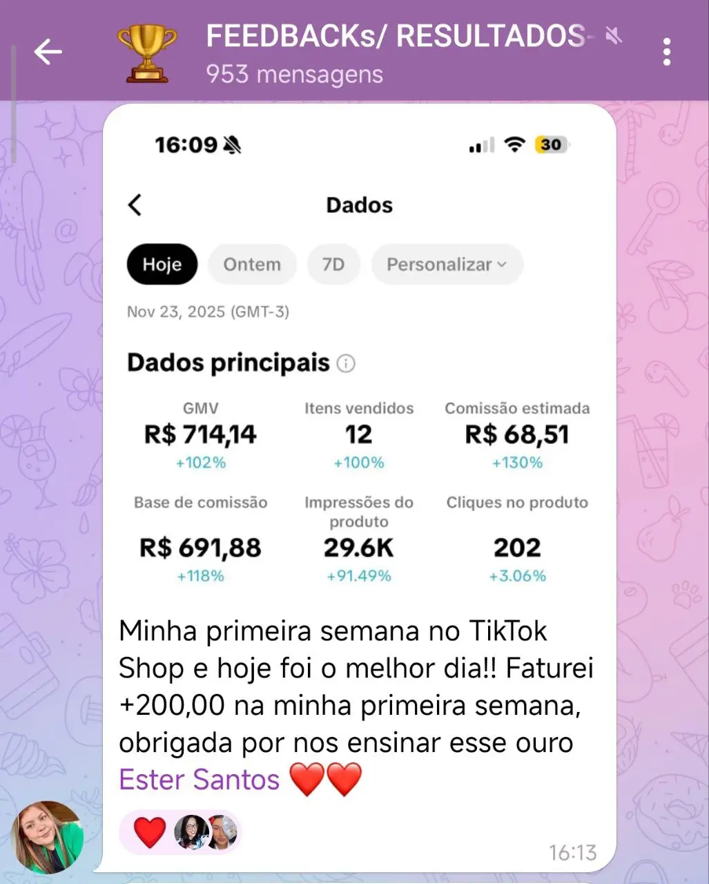 Sim. Temos suporte exclusivo para dúvidas referentes as vendas no Tiktok Shop, vendas em dólar, além de um canal de Network entre alunos(as).